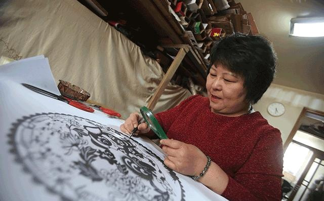 李阿姨:我原来不会剪纸,就是因为认识一个剪纸艺术家才卖了这个东西,但是我觉得我既然卖了这个东西,就得懂它,了解它,所以就开始学习剪纸。