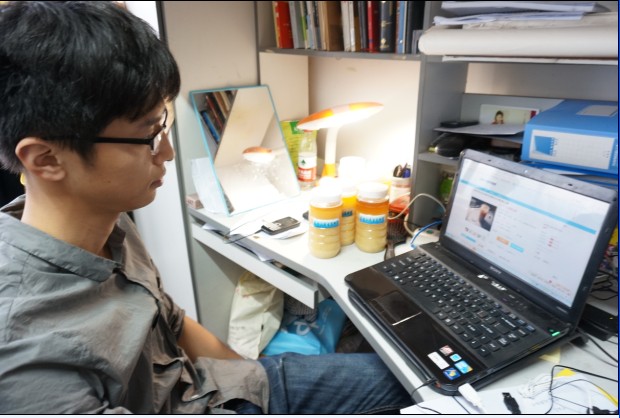 林茂立是我校金融专业10级学生。寒假时,一次偶然机会林茂立品尝到家里做的蜂蜜,发现蜂蜜水甜润可口并且可以促进肠道消化,而且女生大多愿意喝一些冲泡的东西,在学校卖蜂蜜是一个很好的选择。一来以前从没有人在学校卖过蜂蜜,二来这蜂蜜是自己家产的不含防腐剂很健康,应该会有市场,值得一试。抱着这种试一试的想法,林茂立在开学出从家里带来30罐蜂蜜开始在学校销售,以105元一瓶的价格在一周之内30罐蜂蜜销售一空。
